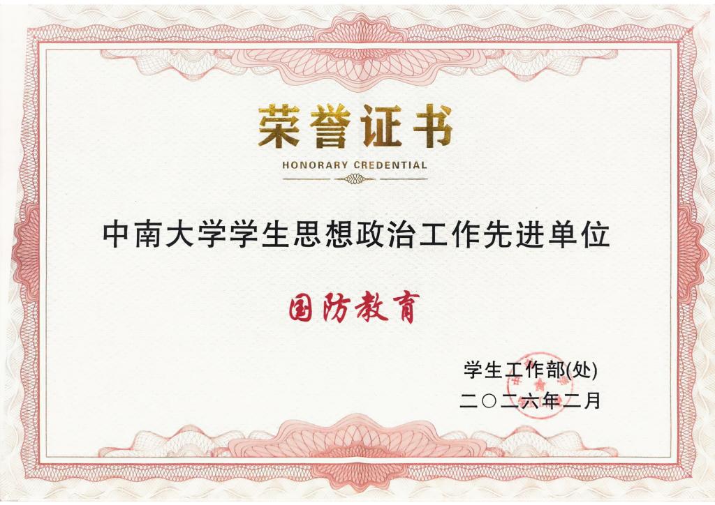 600全讯白菜网址学生思想政治工作先进单位--国防教育