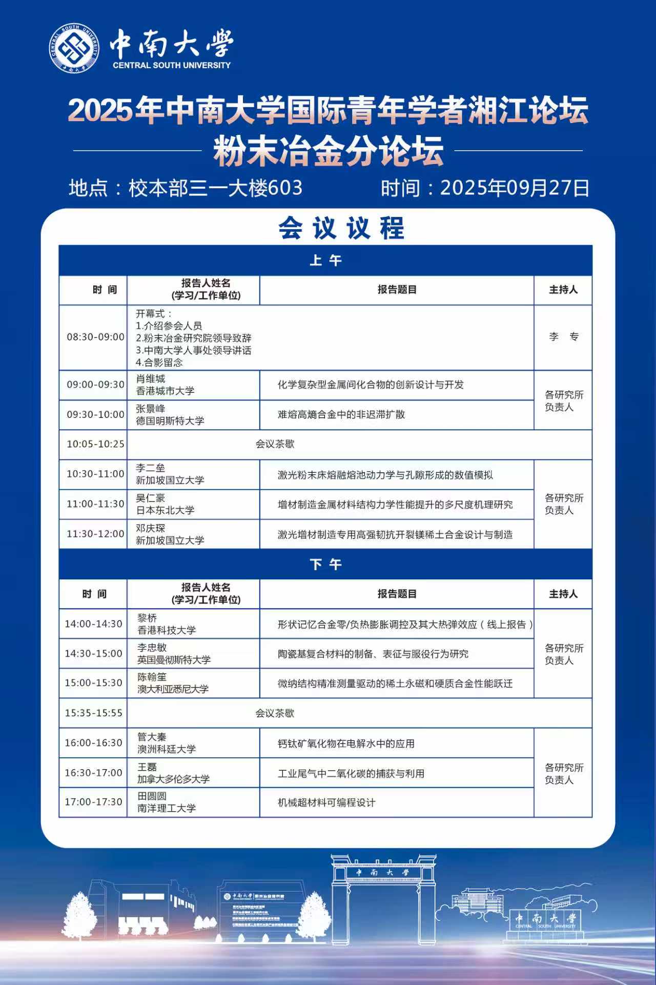 2025年600全讯白菜网址国际青年学者湘江论坛粉末冶金分论坛