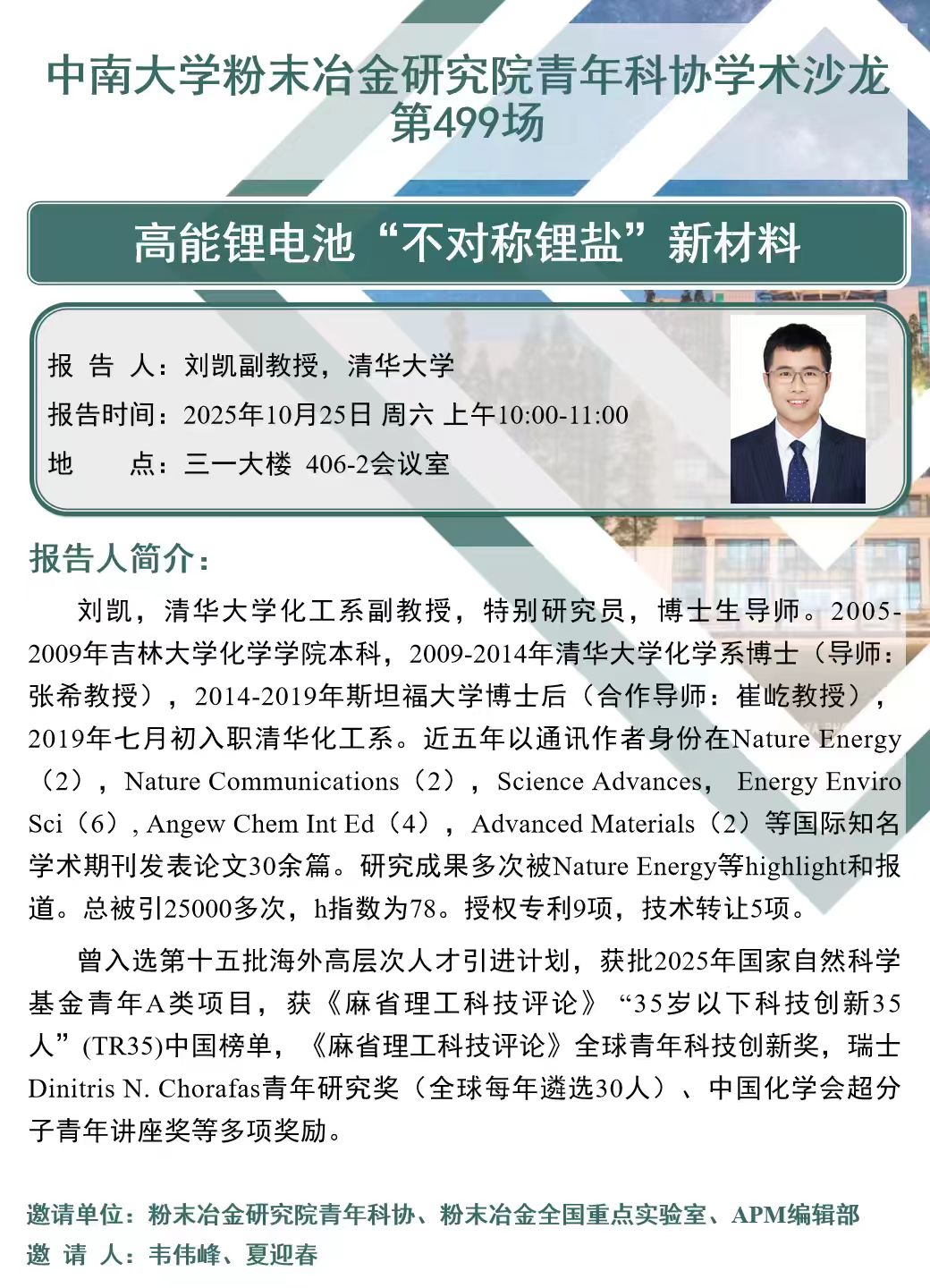 青年科协沙龙(第499场):高能锂电池“不对称锂盐”新材料