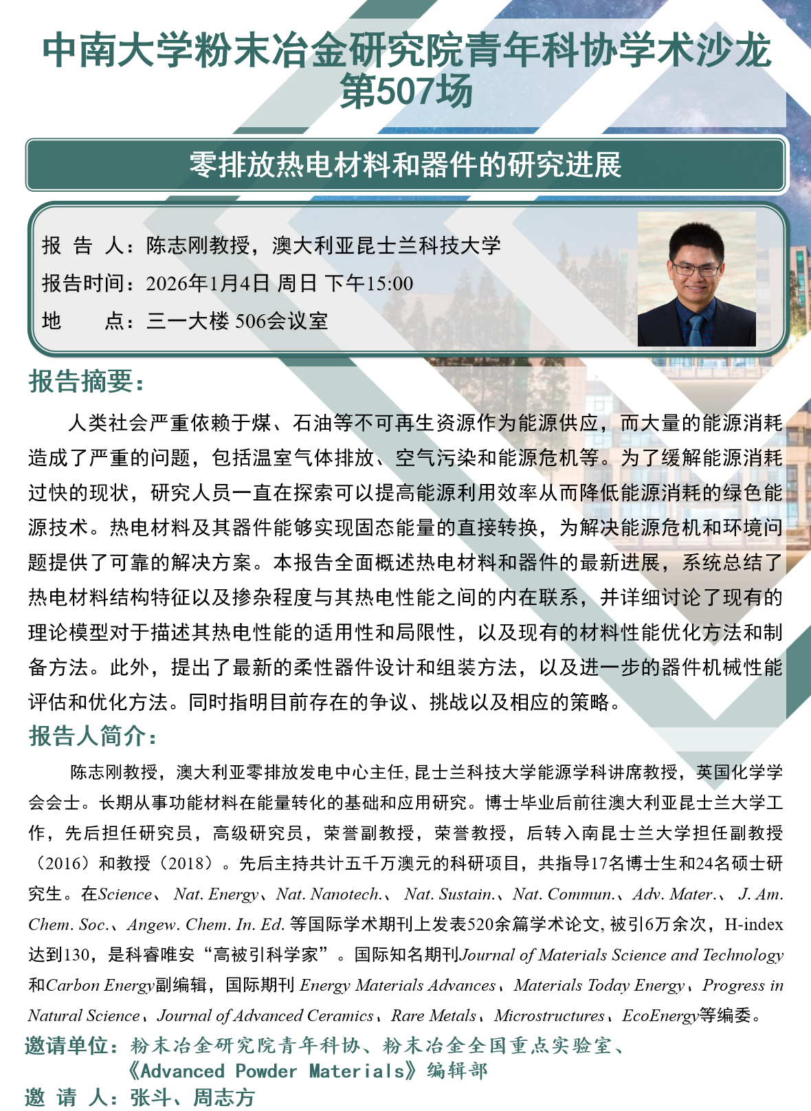 青年科协沙龙(第507场):零排放热电材料和器件的研究进展