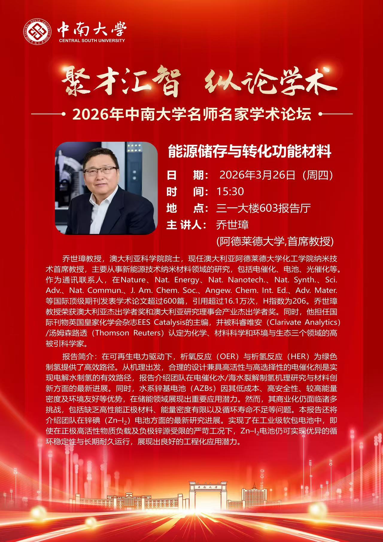 2026年600全讯白菜网址名师名家学术论坛——乔世璋(能源储存与转化功能材料)