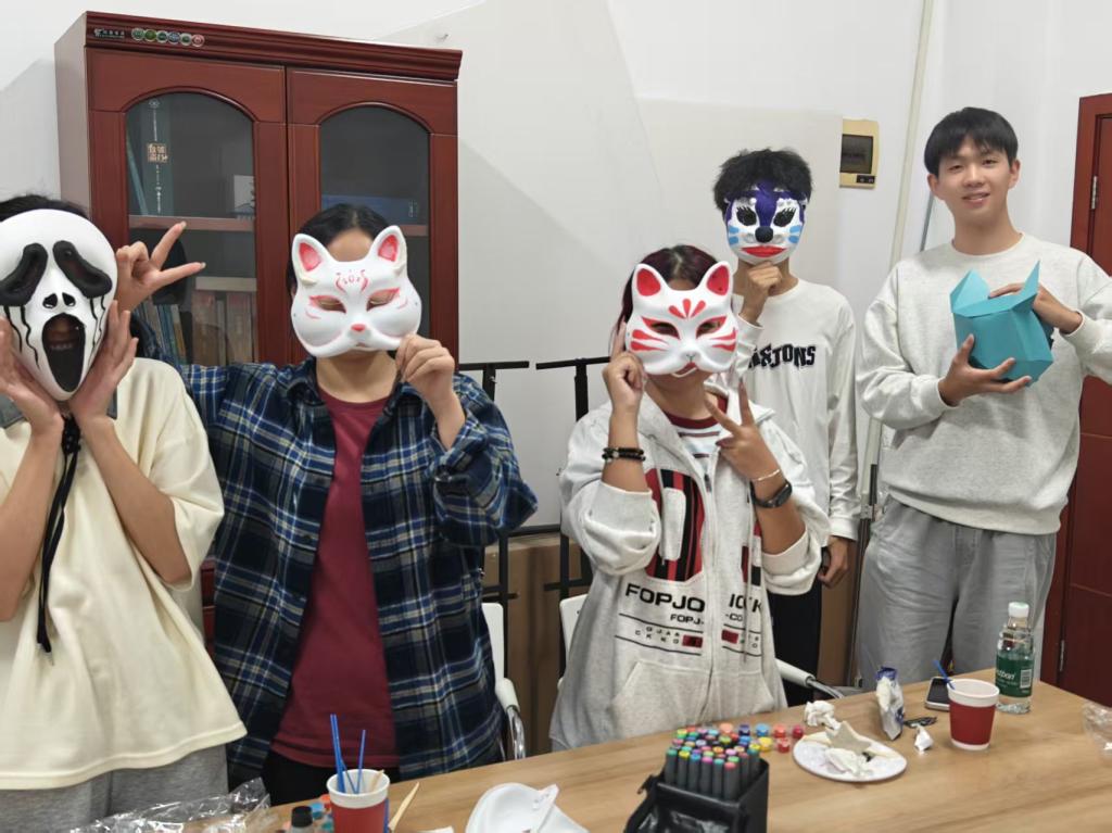 同学们在面具创作中,悄然卸下了表达的心理负担,尽情且自由地释放内心的情绪。同学们积极主动地与周边同学交流创作心得,在思想的碰撞中努力与他人相互理解、达成情感共鸣。在工作人员的精心组织和参与同学的热情投入双重努力下,此次假面派对活动为大家留下了一段充满创意与温暖的美好回忆。