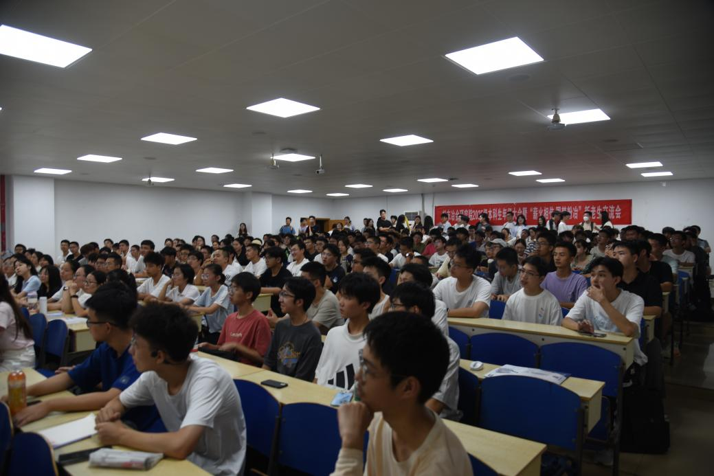 接着,粉冶院2023级优秀学生代表毕鑫向新生进行经验分享。他不仅详细解析了大一课程,还介绍了学习资源的获取渠道与实用高效的学习方法。同时,鼓励同学们积极参与学生工作与各类竞赛活动,以此拓宽视野、锻炼能力,促进自身全面发展。