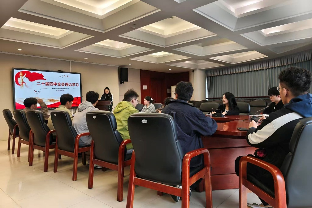 中国共产党第二十届中央委员会第四次全体会议于北京召开之际,为引导研究生深刻领会全会精神,筑牢思想根基,10月20日中午,全讯600cc大白菜研究生会组织全体成员开展二十届四中全会理论学习活动。